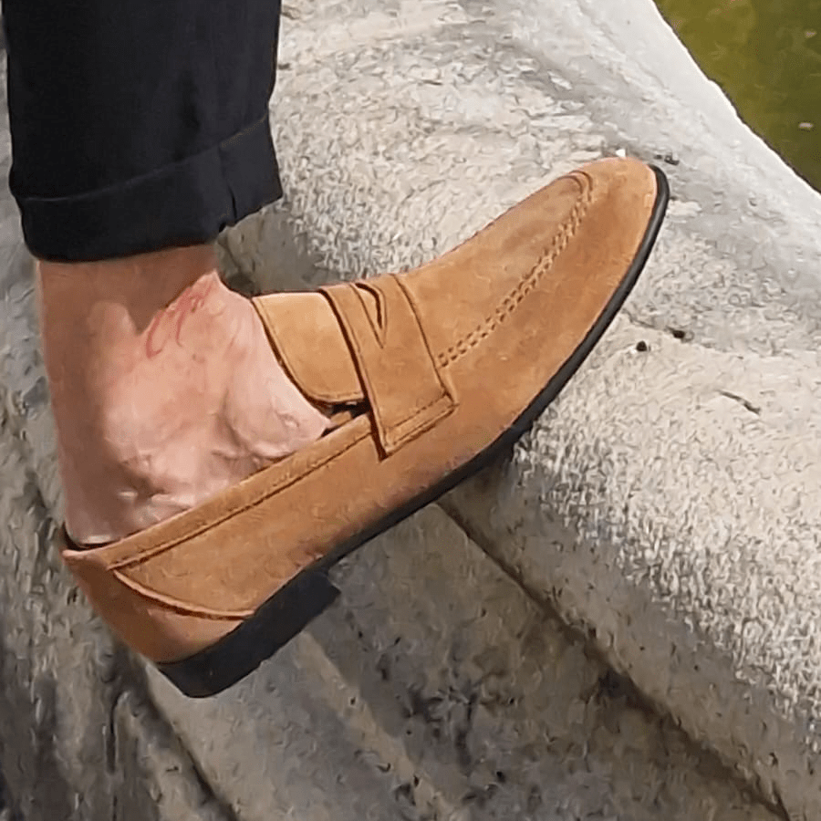 Scopri l'eleganza casual e il comfort delle nostre Loafers in Suede Color Cuoio Chiaro, perfette per la tua estate a Bari e in Puglia!