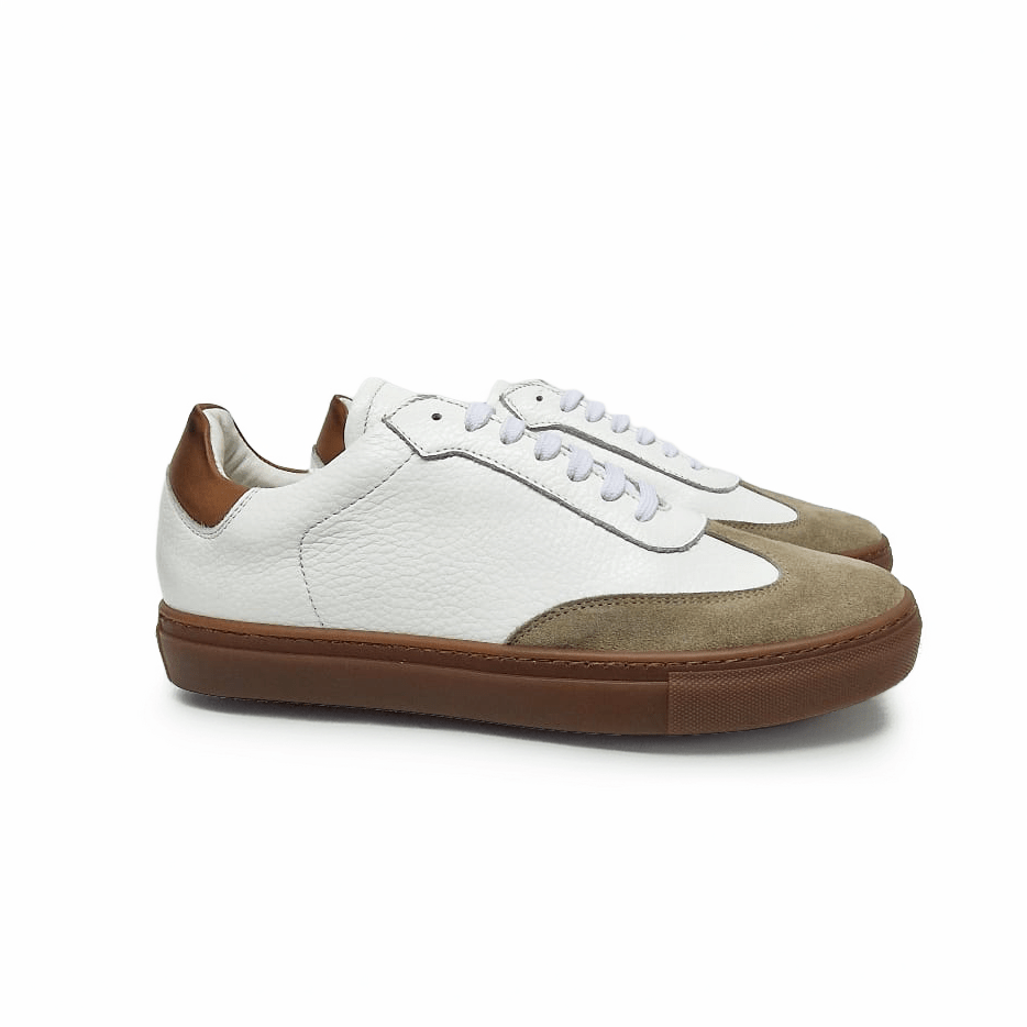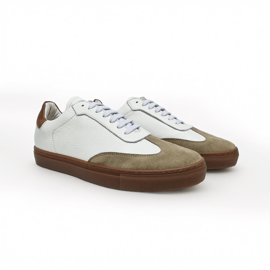 Scopri l'eleganza bicolore delle nostre Sneakers in Pelle Bianca e Suede Grigio!